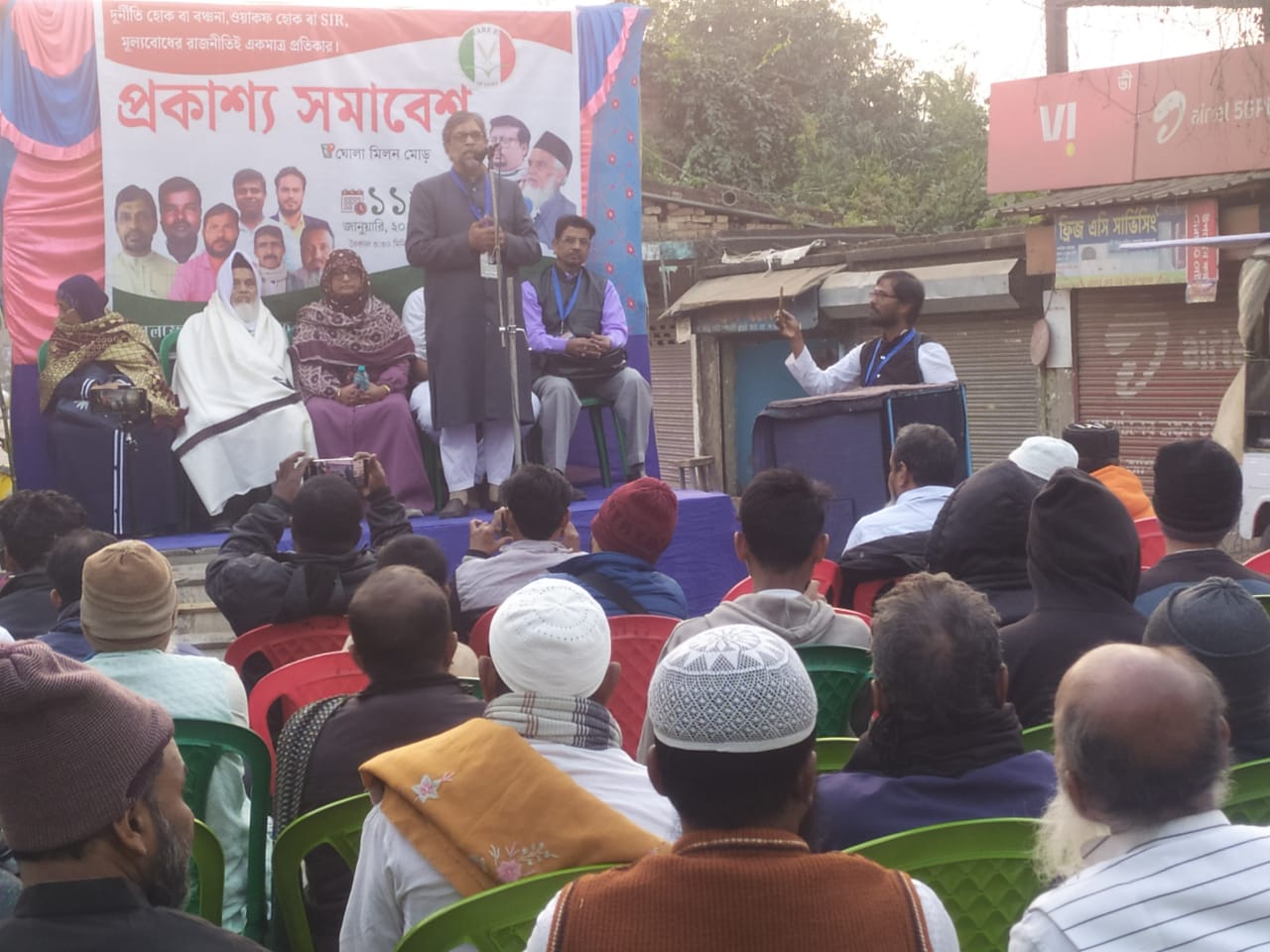 আজ বৈকালে দক্ষিণ চব্বিশ পরগনা জেলার মগরাহাট পশ্চিমের ঘোলার মোড়ে দক্ষিণ চব্বিশ পরগনা জেলার ওয়েলফেয়ার পার্টির প্রকাশ্যে জনসভা অনুষ্ঠিত হয়।