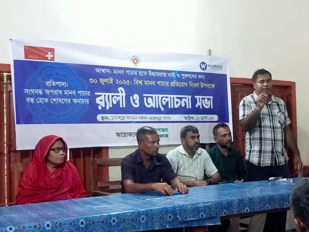 সুইজারল্যান্ড সরকারের সহযোগিতায় ও উইনরক ইন্টারন্যাশনালের বাস্তবায়নে আশ্বাস প্রকল্পের আওতায় রূপান্তরের আয়োজনে আজ ২৮ জুলাই ২৫ তারিখ সোমবার সকাল ১০ টায় নেহালপুর ইউপি মিলনায়তনে র্যালী পরবর্তী এক আলোচনা সভা অনুষ্ঠিত হয়।