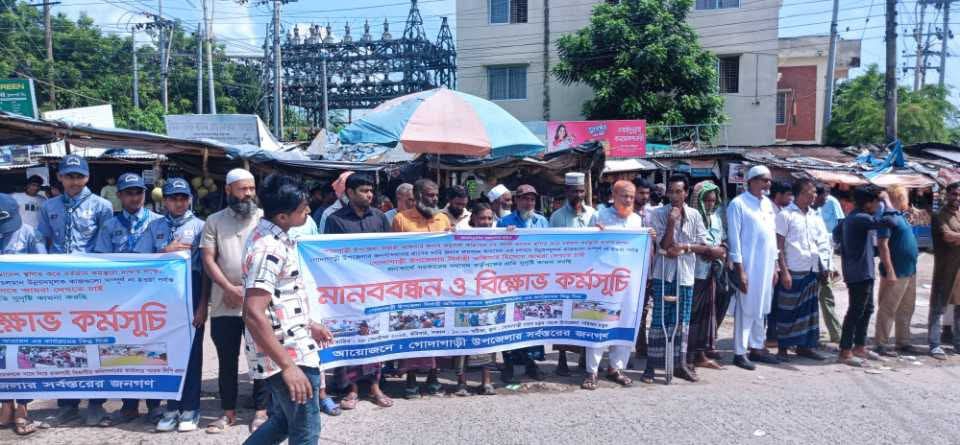 গোদাগাড়ী উপজেলার সর্বস্তরের জনগণের আয়োজনে গোদাগাড়ী গোল চত্বরে এ বিক্ষোভ সমাবেশ ও মানববন্ধন কর্মসূচিতে অংশ নেয় ছাত্রসহ সর্বস্তরের জনগণ।