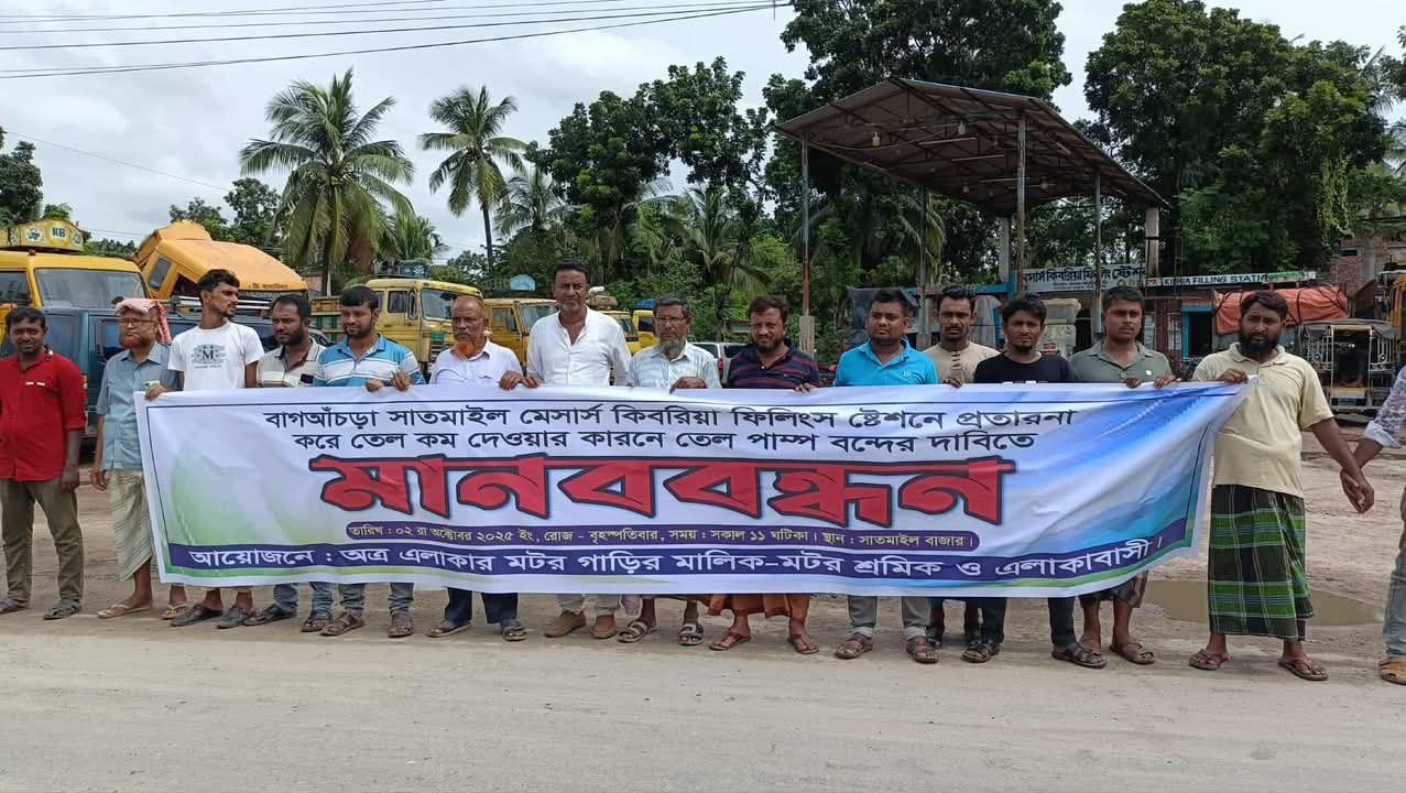 শার্শায় তেল ক”ম দেওয়ার অ’ভিযো”গে পাম্প ব”ন্ধের দা”বিতে মা”নবব”ন্ধন