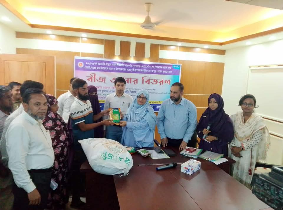 ২০২৫-২৬ অর্থবছরের রবি মৌসুমে আগাম শীতকালীন শাকসবজি (বসতবাড়ি ও মাঠে), সরিষা, গম, শীতকালীন পেঁয়াজ, মসুর, খেসারী, অড়হর এবং চিনাবাদাম আবাদ ও উৎপাদন বৃদ্ধির লক্ষ্যে কৃষি প্রণোদনা কর্মসূচির আওতায় ক্ষুদ্র ও প্রান্তিক কৃষকদের মাঝে বীজ ও সার বিতরণ অনুষ্ঠান অনুষ্ঠিত হয়েছে।