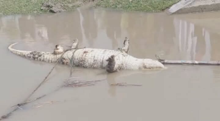 গলায় ফাঁ”স লা’গানো মৃ’ত কুমির মোংলা নদী থেকে উ”দ্ধার