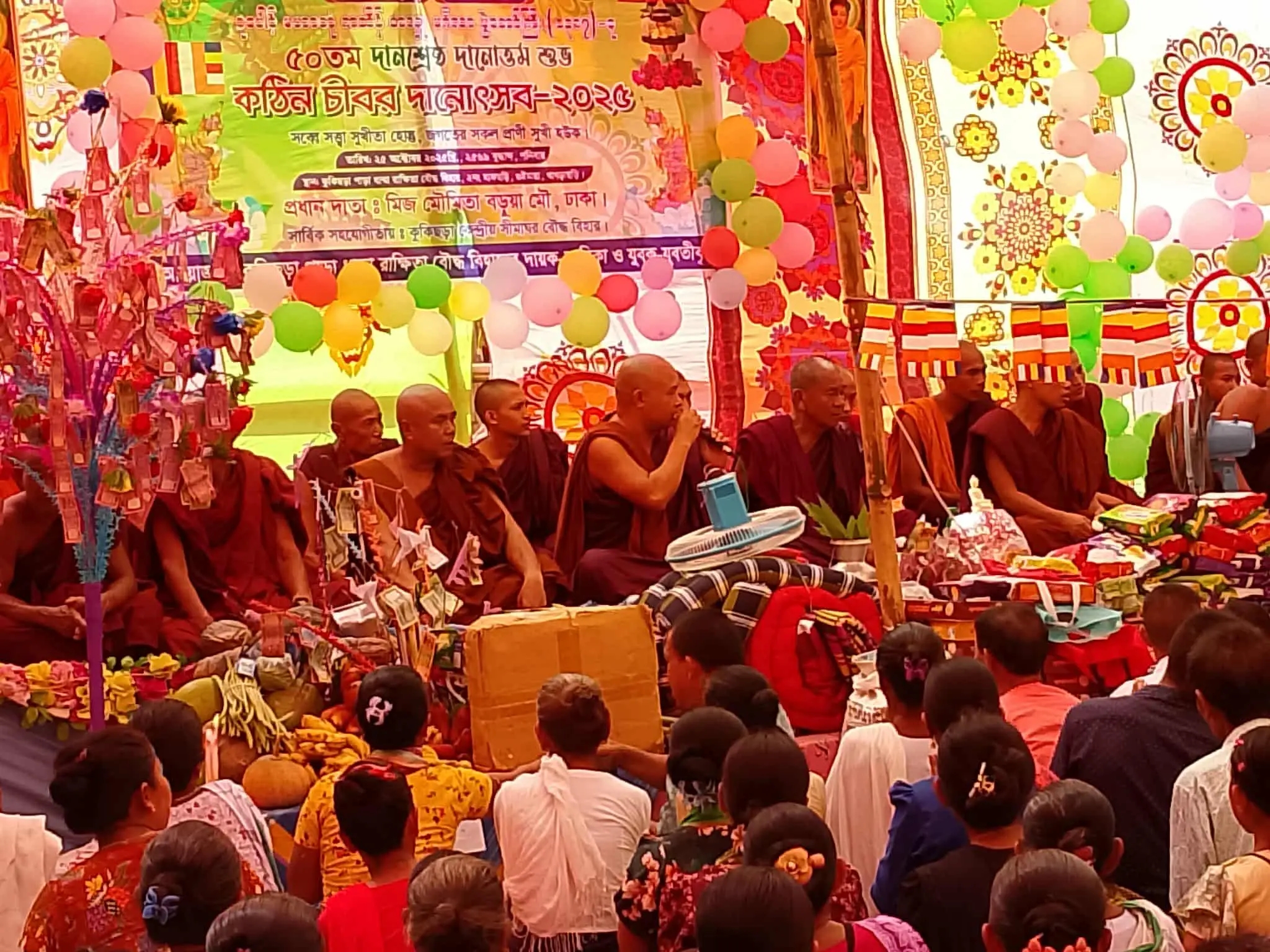 এ সময় দেশ ও জাতির মঙ্গল সুত্র কামনায় বিশেষ প্রার্থনাও করা হয়। কঠিন চীবর দান প্রধান দাতা: মিজ মৌমিতা বড়ুয়া মৌ,ঢাকা
