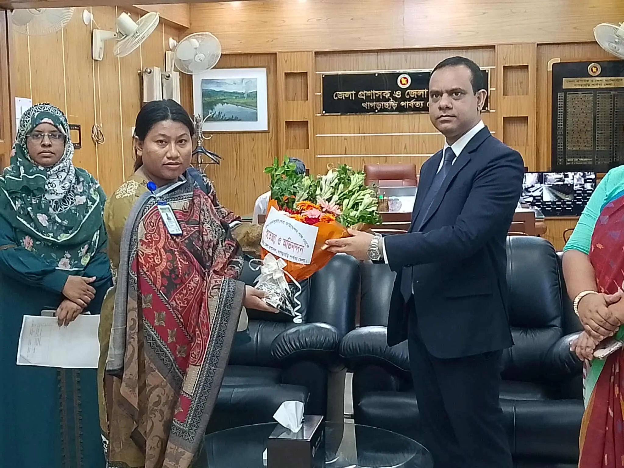 খাগড়াছড়ি নবনিযুক্ত জেলা প্রশাসক মহোদয়কে ফলু দিয়ে শুভেচ্ছা জানান