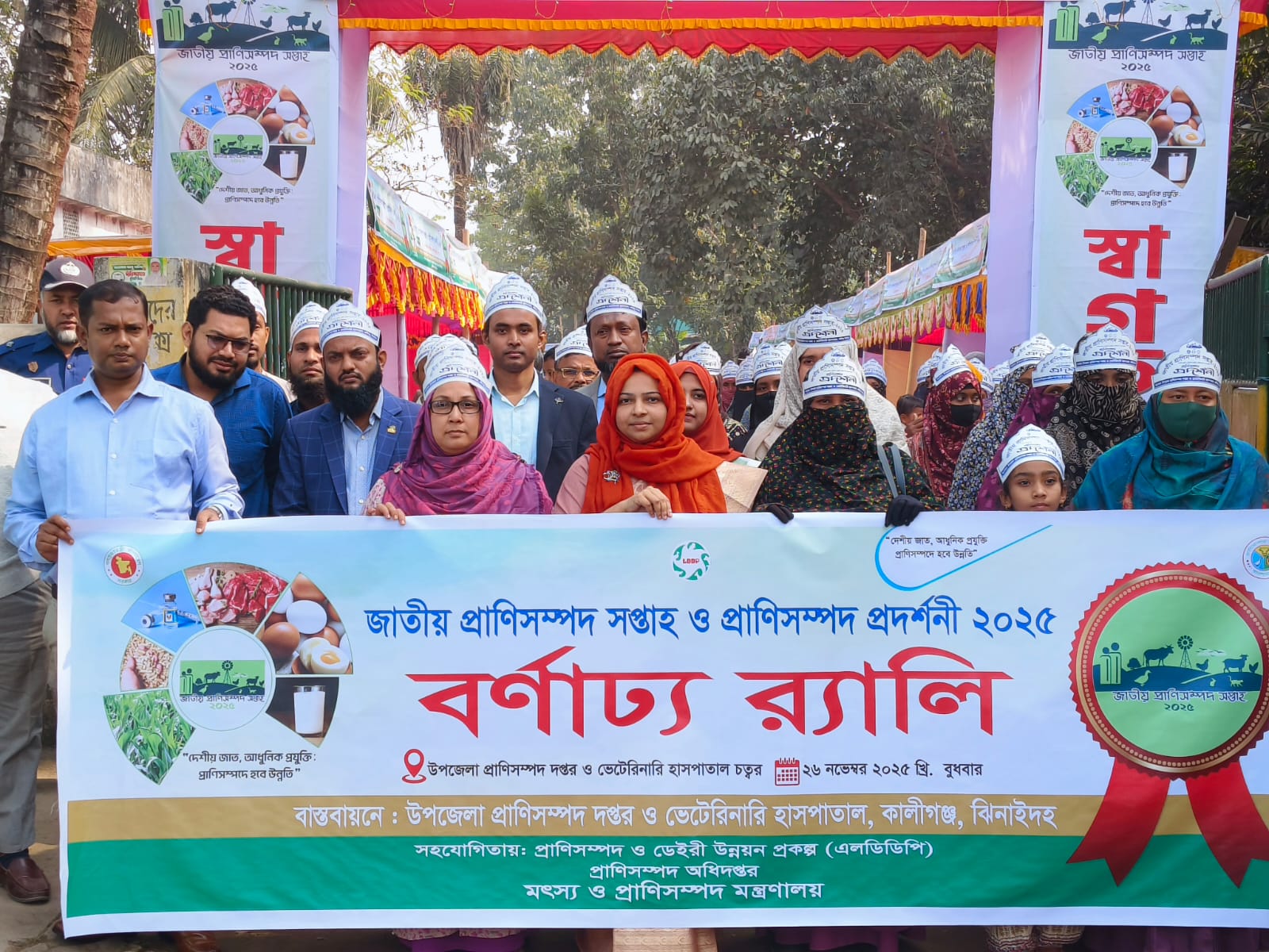 ২৬ নভেম্বর বুধবার উপজেলা প্রাণিসম্পদ দপ্তর ও ভেটেরিনারি হাসপাতাল চত্বরে এক বর্ণাঢ্য আয়োজনের মধ্য দিয়ে জাতীয় প্রাণিসম্পদ সপ্তাহ ও প্রদর্শনী ২০২৫-এর উদ্বোধনী অনুষ্ঠান, র্যালী ও আলোচনা সভা অনুষ্ঠিত হয়েছে।প্রাণিসম্পদ ও ডেইরী উন্নয়ন প্রকল্প (এলডিডিপি) এর সহযোগিতায় কালীগঞ্জ উপজেলা প্রাণিসম্পদ দপ্তর ও ভেটেরিনারি হাসপাতাল এ আয়োজন করে।