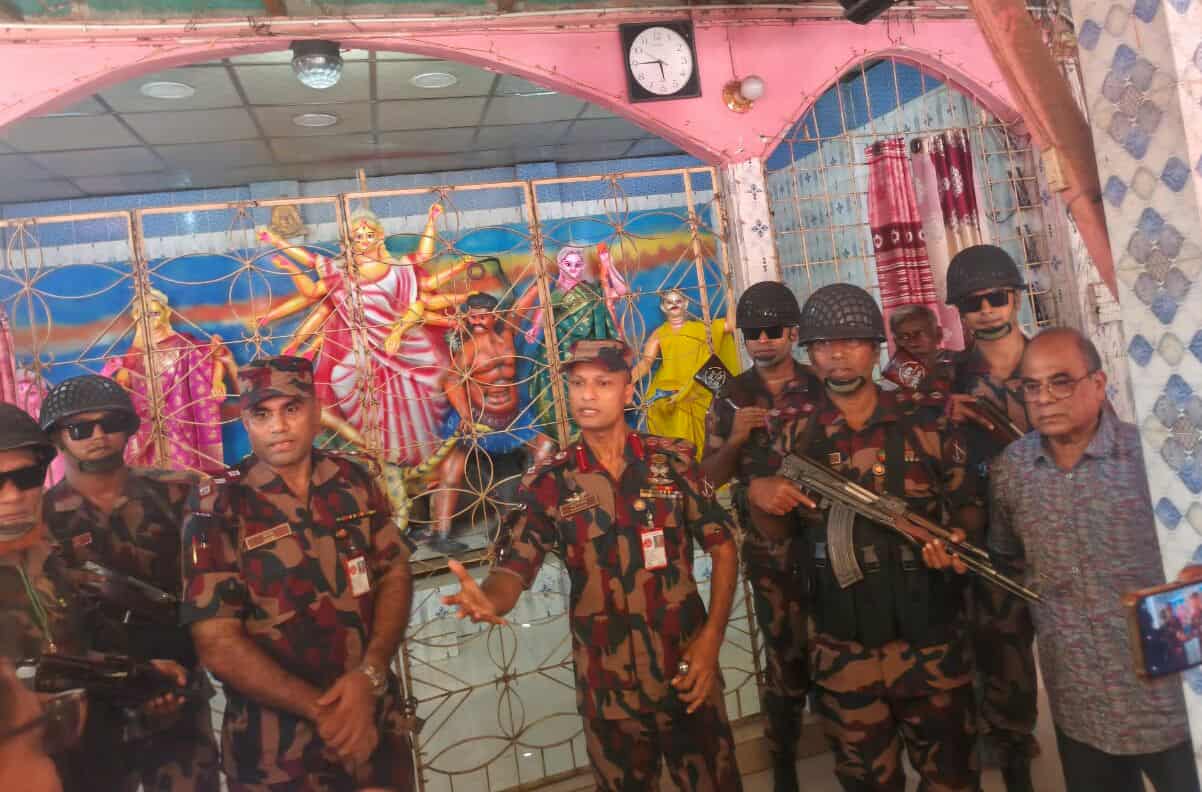 কুড়িগ্রাম জেলার রৌমারী বাজার সার্বজনীন কালী মন্দিরে ২৪ সেপ্টেম্বর বুধবার বেলা ১২ টার দিকে জামালপুর ব্যাটালিয়নের (৩৫ বিজিবি) অধিনায়ক বিএ-৭১০২ লেঃ কর্নেল হাসানুর রহমান, পিএসসি কর্তৃক রৌমারী বিওপির দায়িত্বপূর্ণ এলাকার রৌমারী উপজেলার পূজা মন্ডপ সমূহ পরিদর্শন করেন।